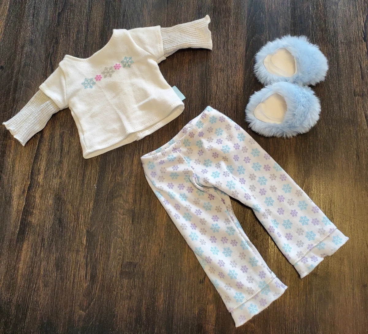 18 034 American Girl Doll Blue Snowflake Pajamas Snuggly Snow Pjs Set W Slippers Ebay